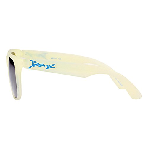 Fashionable UVA UVB Sun Protection for Kids Age: 4-10 Yrs. Often, parents overlook their children's eye protection from the sun. And yet, kids spend much more time outdoors than most adults do, making it extremely important to have year round, reliable protection against those harmful UVA and UVB sun rays. Our team of experts has created the coolest, most innovative and stylish designs to keep your Kids safe and in fashion at all times. Award Winning Designs: Featuring a wild color changing design, as well as a carefully embedded, silicone nose and brow, we make sure your kids feel super comfortable and perfectly secure. The convenient flexible and strong make these kids Sunglasses the ultimate summer accessory.. Top Quality for Uncompromised Safety: We, at BanZ take your children's safety seriously. All of our products are 100% kid-friendly and free from dangerous chemicals. Fully CPSIA and Cali. Prop. 65 Compliant and doctor recommended, our kids sunglasses are parent's first choice worldwide. Risk-Free Purchase: These awesome sunglasses are backed by a 1-year replacement guarantee for breakage. To Benefit from our awesome warranty, simply Register your BanZ purchase on our website with 30 days of purchase. Should anything happen to your BanZ sunglasses, we will ship a FREE REPLACEMENT pronto. JBanZ - Chameleon Dimensions:Lens Width: 50mm Lens Height: 40mm Bridge Width: 15mm Temple Arm: 120mm