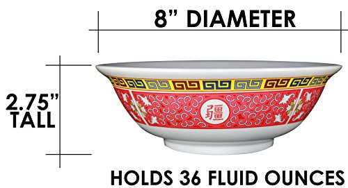 Includes One 36 ounce 8 inch soup bowl + One oriental soup spoon + One pair of dragon chopstics