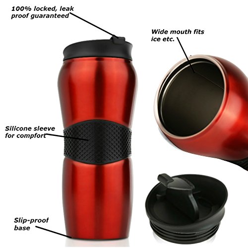 Now! You Can Really Enjoy Your Fresh Hot Coffee Or Tea, With The Best Travel Mug That Keeps It Hot For Hours!Coffee lovers, take along your coffee every morning with the Swivgo Travel Mug, with peace of mind that it will stay hot for hours! This mug was designed, with the latest vacuum-seal technology to ensure you're hot or cold beverages retain the temperature for a long time and to preserve flavor and freshness of your drink. The lid was especially designed with on-the-go drinkers in mind! Its 100% leak proof which gives you peace of mind that it won't spill any liquid so you don't have to worry anymore to carry your coffee even in your bag. The sleek and patent design makes it very easy to hold even with small hands, the silicone sleeve makes it very comfortable to grasp.