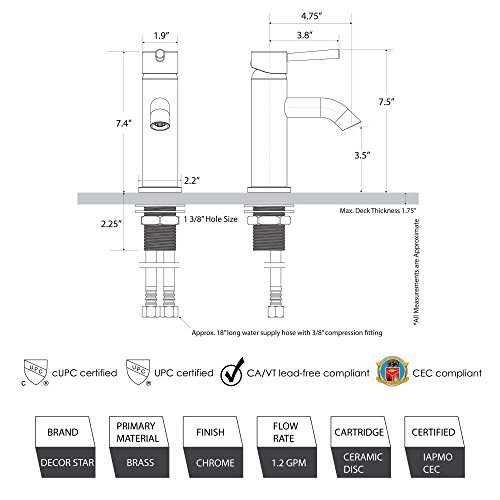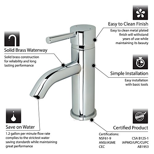 Decor Star BPC03-SC Single Handle Hole Bathroom Vanity Sink Lavatory Faucet UPC cUPC NSF AB 1953 Lead Free Chrome
