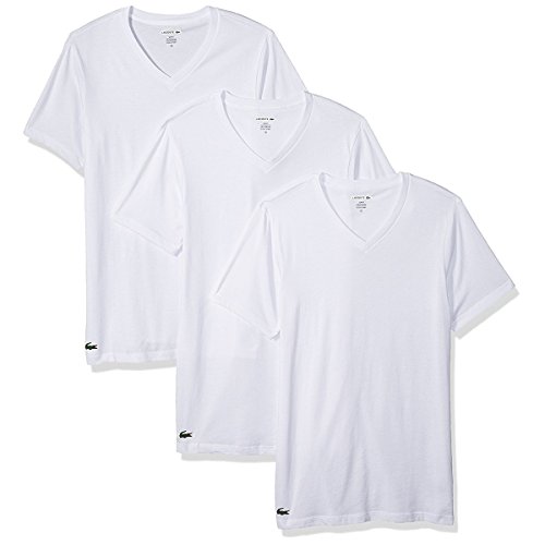 Lacoste Men's 3 Pack Slim V Neck Tee, White, Medium