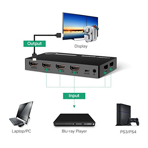 UGREEN HDMI Switcher 5x1 with IR Remote Wireless Support 1080P, 3D for Laptop, HD-DVD, PS3, Xbox360 etc