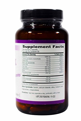 Stress B-Complex Caps. 100 capsules. Dietary Supplement. High Potency B-Complex Vitamins. Yeast-free. TwinLab Stress B-Complex Caps with Vitamin C are easier to swallow and assimilate. Well tolerated by most highly allergic individuals. No tablet binders, coatings or colorings. Free of the most common allergens such as soy, yeast, barley, wheat, lactose (milk sugar) and all milk, citrus, fish and egg products. No added flavorings, sugars, salt, artificial sweeteners, colorings, preservatives or salicylates. Packaged in a glass bottle for maximum stability, quality and freshness.Feature