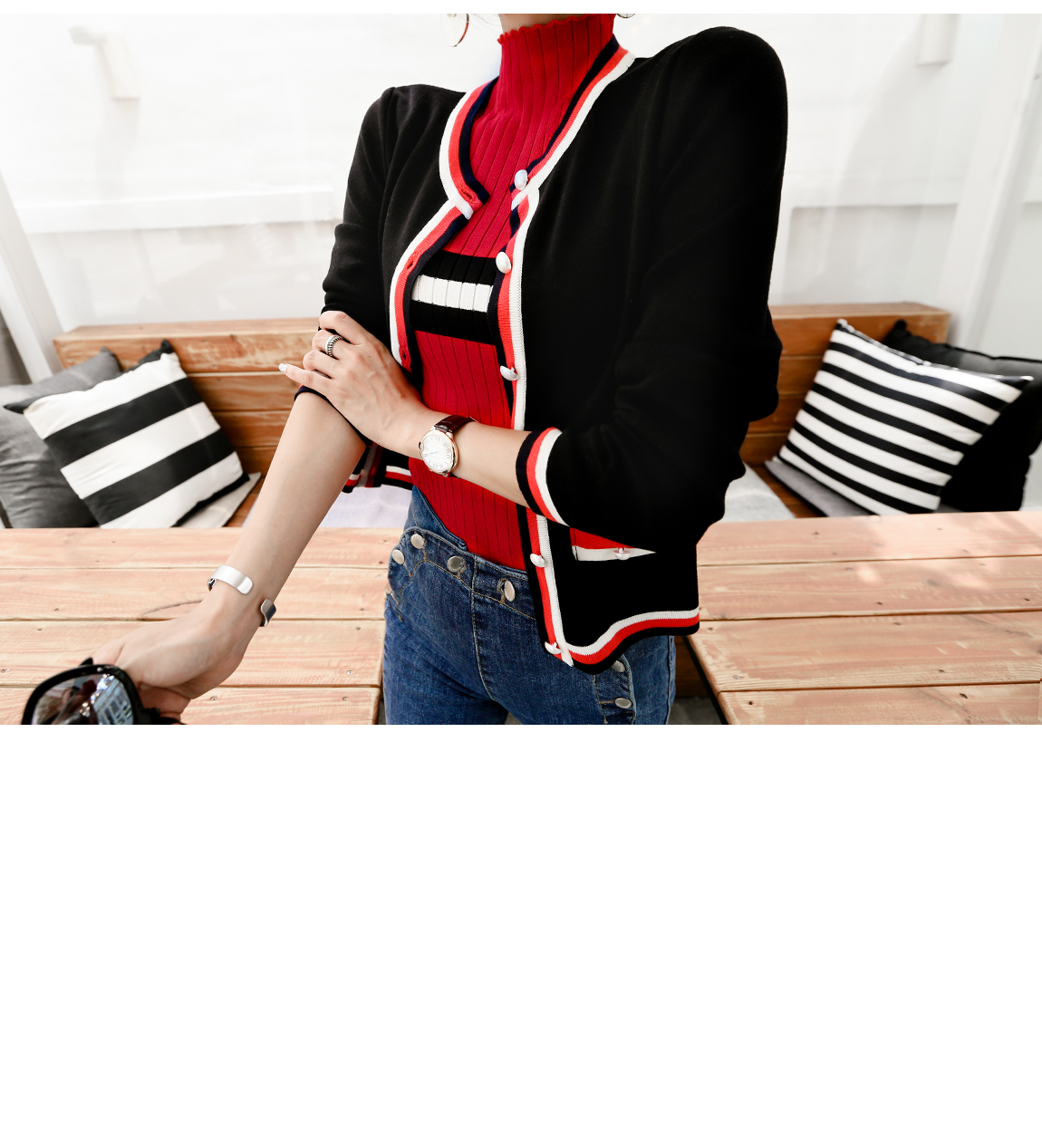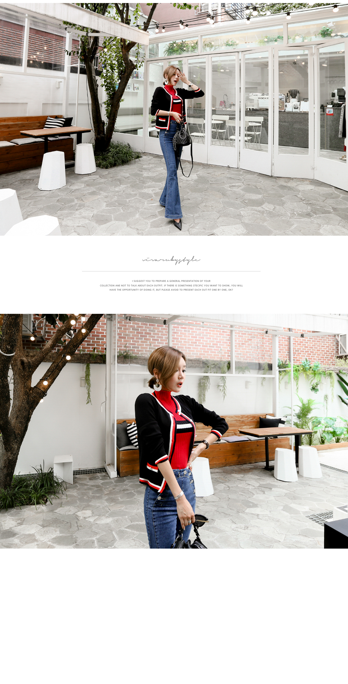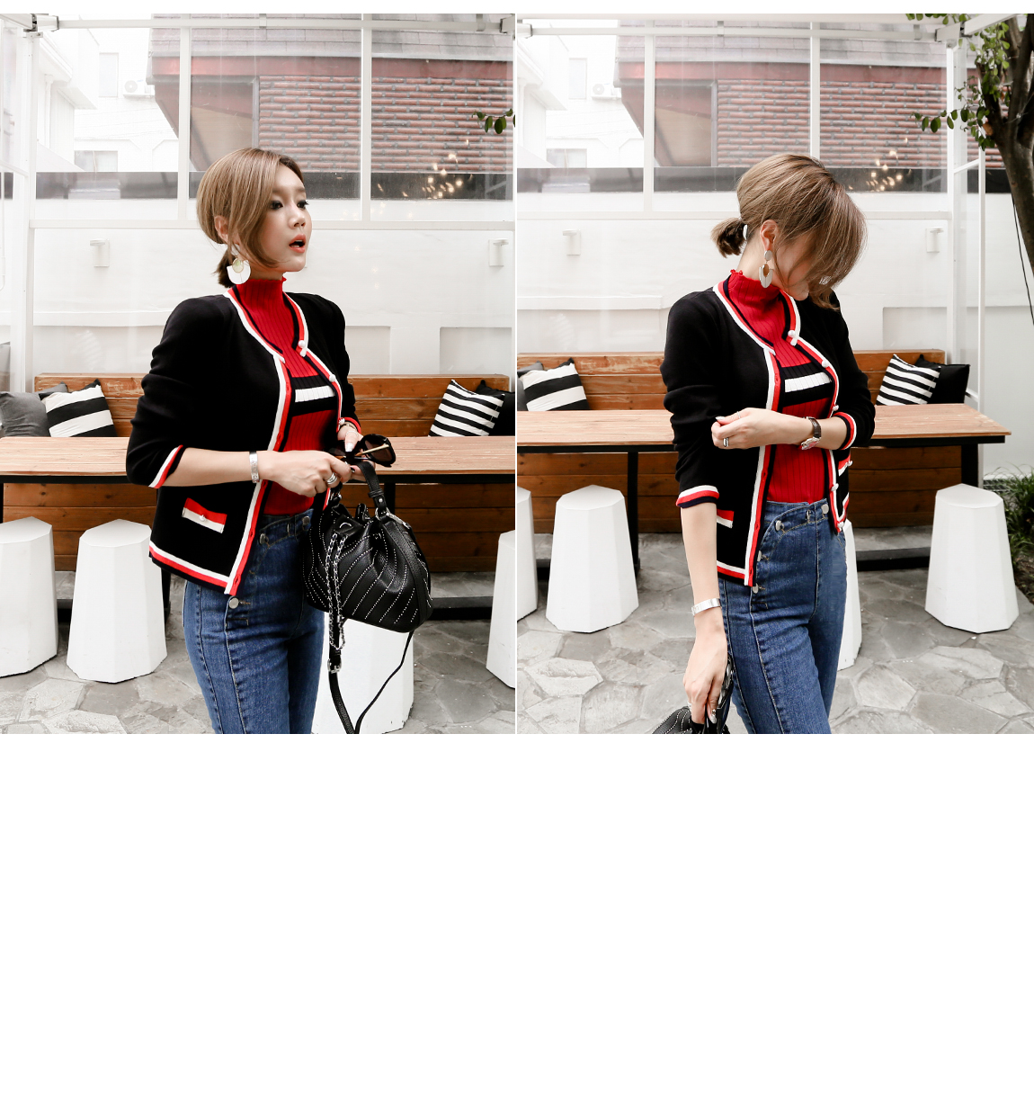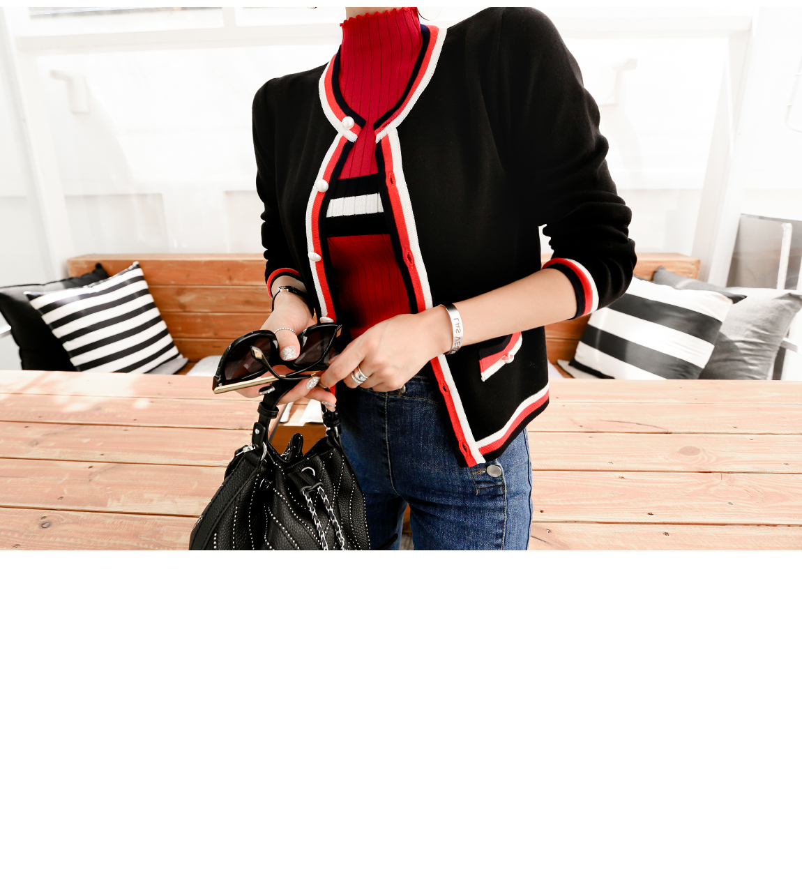 아웃라인의 배색 디테일로 트렌디한 포인트를 주었어요