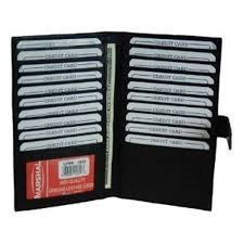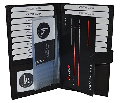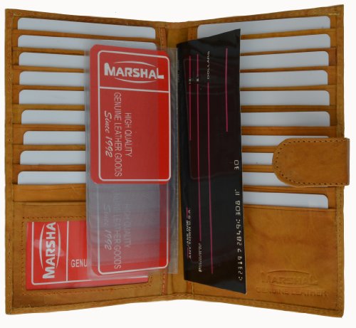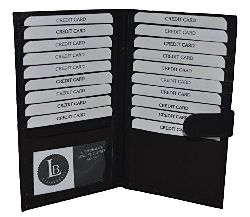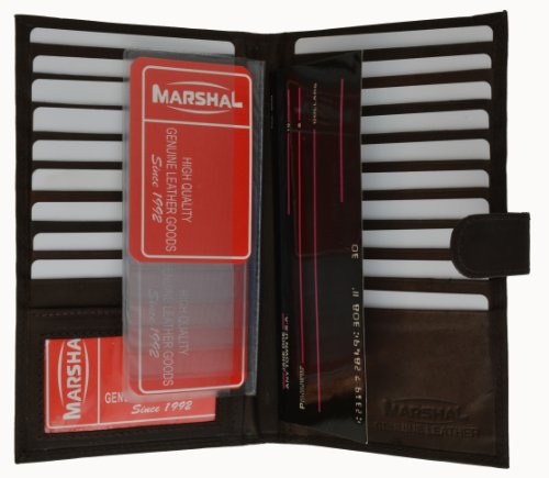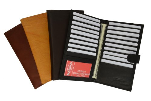 Product DescriptionMarshal Genuine Leather Bi-fold Card Holder;Material: Genuine Leather Bi-fold;Size: 8.5" x 7";Credit Card Slots: 20 ;SKU Code: #1629CF;I.D. Window: Yes;Currency Pocket: Slots under each side for cash;Other features: Pen holder0