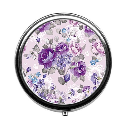 Abstract background with flowers pill box/pill case----Round pill box/case--- Three-compartment pill box/pill case