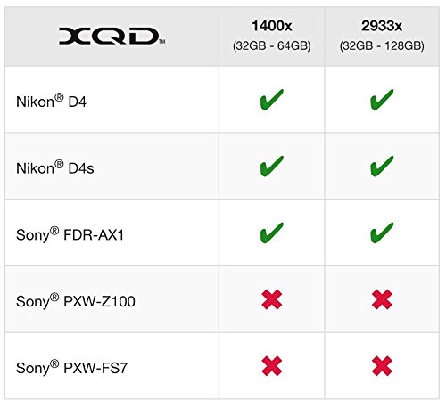 Capture stunning, high-quality images and 4K video with the Lexar Professional 2933x XQD 2.0 card. Designed for use with the latest generation of DSLR cameras, the card supports both PCI Express Gen 2 and USB 3.0 interfaces, and provides high-speed performance, durability, and reliability, with a read transfer speed up to 2933x (440MB/s). This improves transfer speed from card to computer, dramatically accelerating workflow. The Professional 2933x XQD 2.0 card is available in large capacities from 32GB to 128GB, includes a lifetime copy of downloadable Image Rescue software, and comes backed by expert technical support and a limited lifetime warranty.Feature