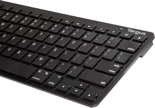 The Targus Bluetooth Wireless Keyboard for Tablets features an integrated ergonomic tilt to provide added comfort and avoid strain while typing. The keys provide tactile feedback to the user to help improve typing accuracy and speed. The Bluetooth wireless technology provides a clean, cable free workspace and quickly syncs to your tablet for immediate use. The keyboard features up to 7 months of battery life and includes a low power indicator light to let the user know when the battery is running low. Designed in black to match the front of most tablets, this keyboard is comfortable yet compact; sized for convenient travel. The keyboard supports tablets running iOS, Windows and Android operating systems. Designed for use with tablets running: Android, Windows and iOS or Mac OS . Functionality -Ergonomic design to help prevent strain; Bluetooth technology provides a cable-free connection; keys provide tactile feedback for improved typing speed and accuracy; 7 months of battery life and low power indicator light