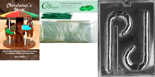 Cybrtrayd Candy Cane Chocolate Mold with Chocolatier's Bundle of 25 Cello Bags, 25 Green Twist Ties and Chocolatier's Guide