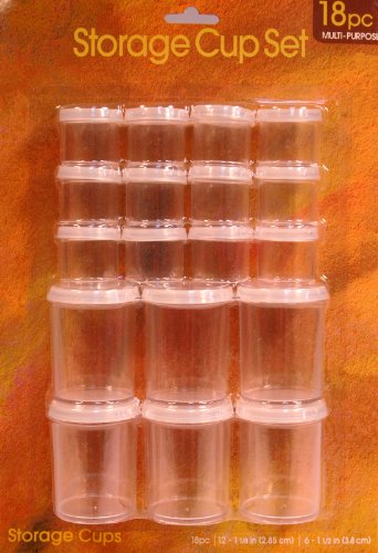 18 Piece Storage Cups Set with Lids - Clear Plastic Great for Paints, Beads Etc
