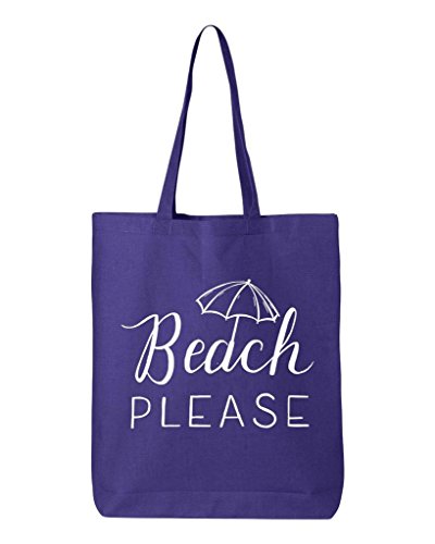 Shop4Ever Beach Please Cotton Tote Funny Reusable Shopping Bag 6 oz Purple -Pack of 1- Eco