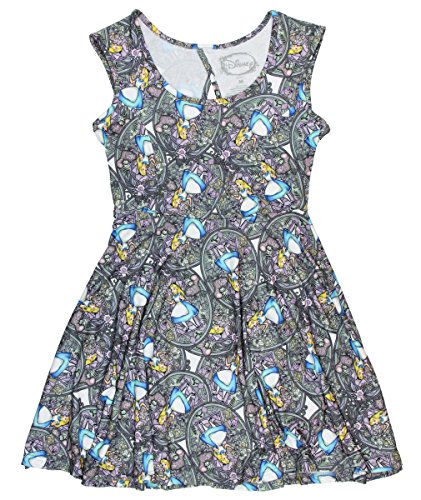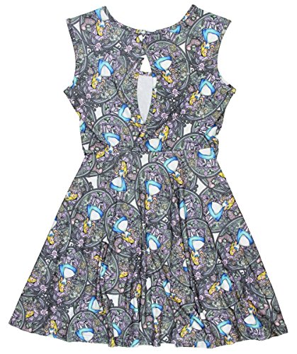 Fall down the rabbit hole in this dress from Disney's Alice In Wonderland . The design features an Alice stained glass print and keyhole back accent.