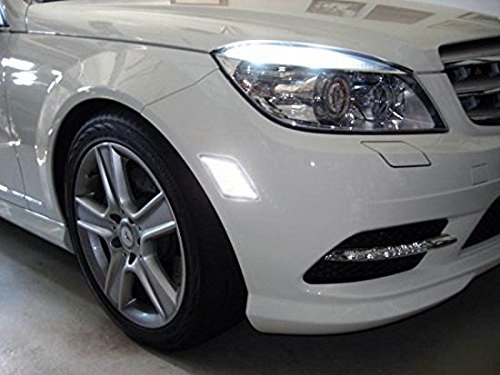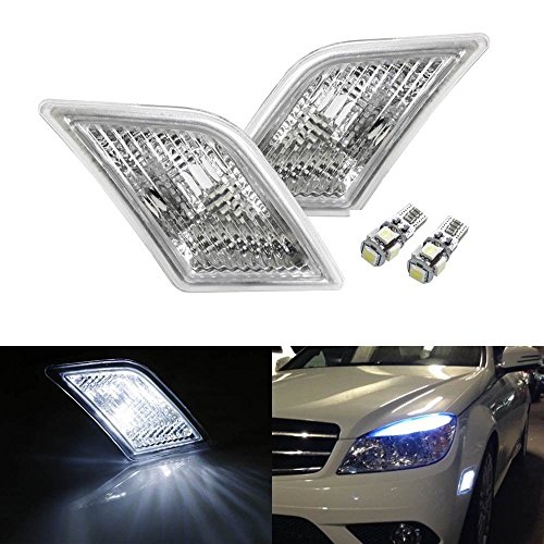 iJDMTOY (2) Xenon White LED Lights w/ Clear Lens Side Marker Lamps For 2008-2011 Mercedes Benz W204 C250 C300 C350 & 2008-2013 C63 AMG