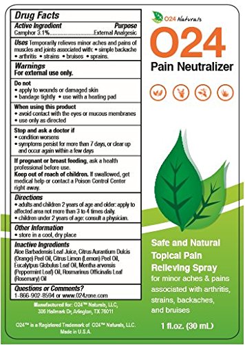 -. Title : O24 Pain Neutralizer: Safe and Natural Topical Pain Relieving Spray