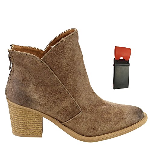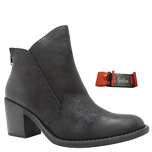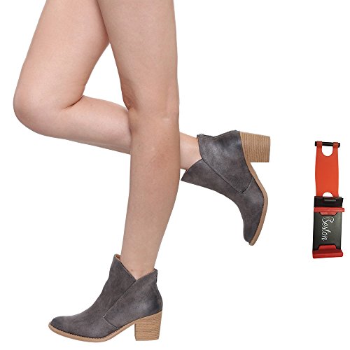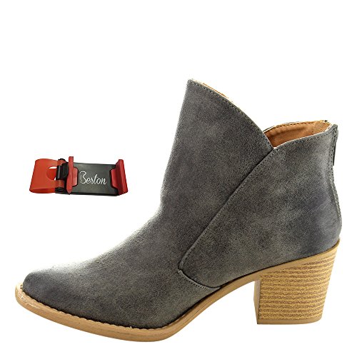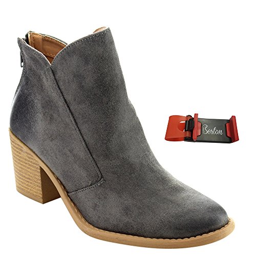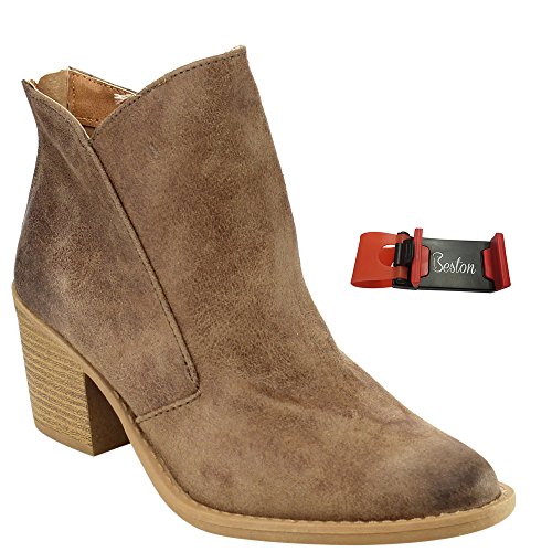 Binding : Apparel Product Description Bring subtle sophistication to your every day outfits with these distressed booties. Designed with distressed faux suede upper, faux wooden stacked heel, and zipper entry for easy on and off. PLS NOTE: All the orders for this design from Beston will be packed with a Beston Phoneholder Adjustable Elastic Car Steering Wheel Phone Socket Holder as Free Gift.