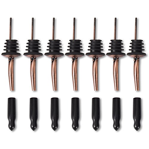 Copper Liquor Bottle Pourers with Tapered Spout and Pour Spouts Dust Cover Caps(7+7)