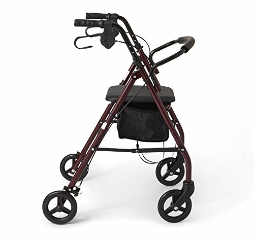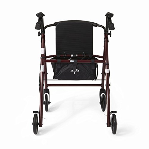 Medline Standard Steel Folding Rollator Walker with 6" Wheels, Burgundy