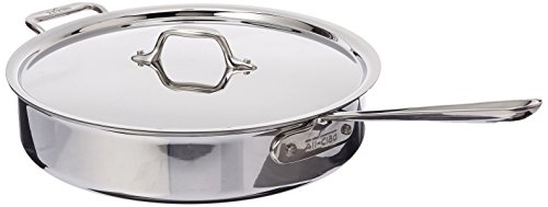 Prepare tasty and flavorful dishes with this saute pan with lid from All-Clad. Made with three-ply bonded construction, this stainless-steel cookware is sturdy, yet elegant, and it is designed for everyday use. The saute pan is ideal for restaurant or home use. It is compatible with most traditional cooking surfaces and induction stovetops. It is great for sauteing vegetables or meat pieces. The long handle is attached with rivets for secure handling, and it facilitates easy transport. The lid helps trap moisture, heat, flavor, and nutrients inside while the food cooks. For maintenance, this saute pan is easy to clean by hand-washing or in the dishwasher. It is a perfect kitchen essential for demanding chefs and cooks, as well as moms who like to prepare food for the family. It will serve you for many years because of its unmatched durability. This cookware is ideal as a wedding or housewarming gift for your friends or loved ones.Feature