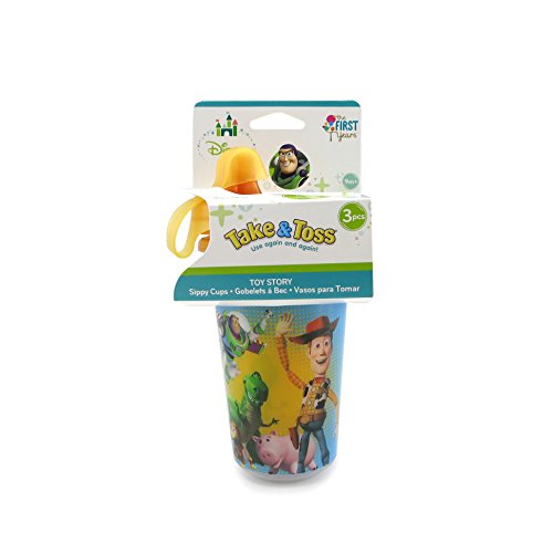 -. Binding : Baby Product -. Brand : The First Years -. Color : Toy Story -. Department : baby-boys -. EAN : 0071463097685 -. Feature : Durable enough to use over and over, yet affordable enough to treat as disposables / Lovable Disney characters / Snap-on lids are valve-free to make cleaning easy / Lids are interchangeable with most other Take & Toss products / Dishwasher safe; BPA Free -. Label : The First Years -. Manufacturer : The First Years -. Model : Y9768 -. MPN : Y9768 -. NumberOfItems : 3 -. PackageQuantity : 3 -. PartNumber : Y9768 -. ProductGroup : Baby Product -. ProductTypeName : BABY_PRODUCT -. Publisher : The First Years -. ReleaseDate : 2009-12-18 -. Studio : The First Years -. Title : The First Years The First Years Disney Take & Toss Sippy, 10 Ounce, 3 Pack Toy Story -. UPC : 071463097685