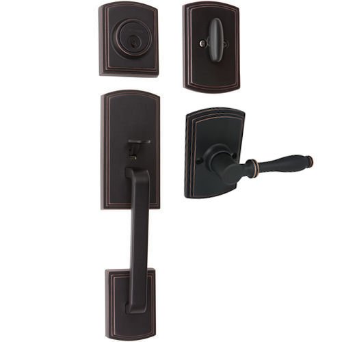 -. Feature : Finish: Oil Rubbed Bronze / Functionality: Handleset (Front Door) / Fits on 1 3/4" to 2 1/4" thick doors. --- Adjustable Latch to fit 2 3/8" and 2 3/4" Backsets