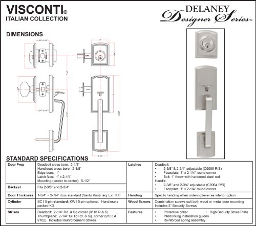 -. Title : Delaney Designer Series Oil Rubbed Bronze Visconti Handleset with Various Interior Options