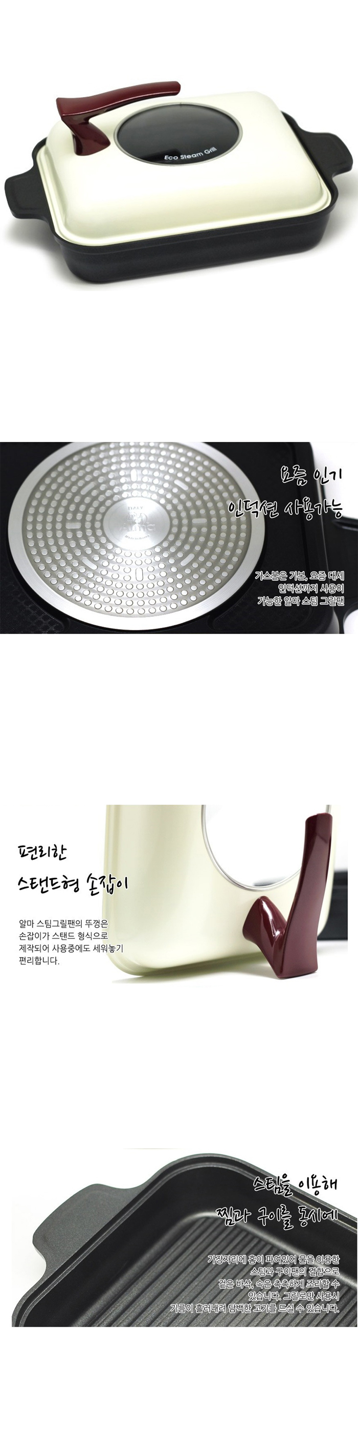 Convenient Stand Type Handle - ALMA Steam Grill Pan's lid is made with stand type and convenient for standing up during use.