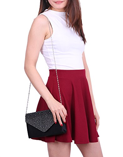 Decorated with sparkly rhinestones, that are eye-catching and will enhance any outfit, this transformer clutch is equipped with a detachable chain strap that will allow you to wear it as a crossbody or as a shoulder bag. Each handbag packs plenty of space to store your essentials such as your smartphone, wallet, cosmetics, and other belongings and its envelope flap closes with a magnetic snap, keeping your valuables secure.