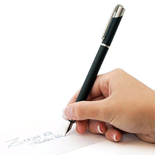 -. Title : Tombow ZOOM 101 Carbon Fiber Fountain Pen, Refillable, Black/Silver Barrel