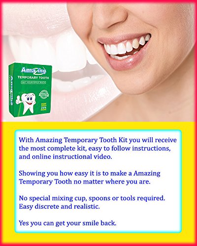 -. Feature : 😢 So you've lost a Tooth and you don't have the money to go to the Dentist? Amazing Temporary Tooth will help you get your Smile back. Our temp dental material is the highest grade, non toxic material available and is extruded right here in the USA, some other brands use materials made in China. / 😳 You won't need a special mixing cup, or spoon, or dental tools to use this kit. No special tools required at all. Our Easy to follow instructions with bright clear COLOR pictures make this the Best kit on the market. Do not be fooled by other brands charging you for extra "gifts" that you don't need. / 😏 We provide you with access to a online instructional video that shows you how easy it is to use this product. After watching our instructional video, you will be able to make a Temporary tooth from the comfort of your own home, or while traveling. / 🙂 With Amazing Temporary Tooth, it is easy to fill that missing tooth with a realistic looking tooth, That is comfortable and will give you the confidence to Smile again. / 😃 Easy to follow instructions. Instructional Video. Buy now and Smile with confidence again.