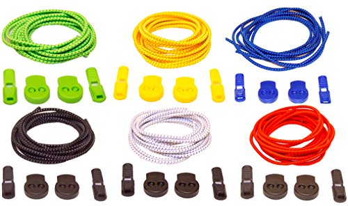 - NICE 6-PACK - This set of six stretchy shoe laces contains the most popular colors. Match it to any of your sneakers, running shoes, tennis or walking shoes and feel the burden lifted: you no longer have to tie your shoes! After you tie them once, you can simply slip into your shoes. Save time, eliminate hassle!