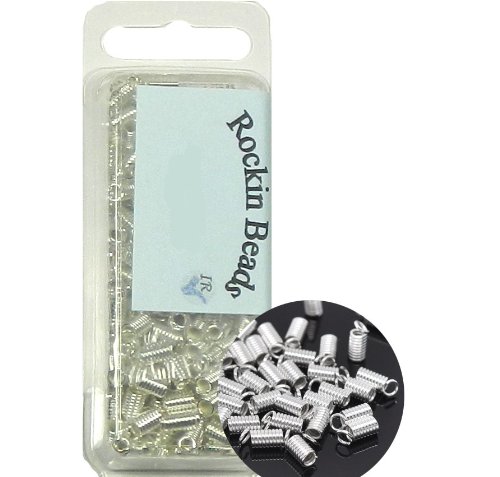 200 Cord Tip/ends Coil Silver Plated Steel, 9x4mm (Fit 2-2.5mm Cord) 2.6mm Inside Diameter. Sold Per Pkg of 200