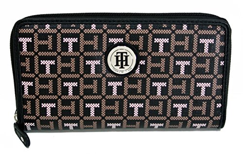 • Tommy Hilfiger Zip-Around Wallet; Faux Leather; Black/White/Brown