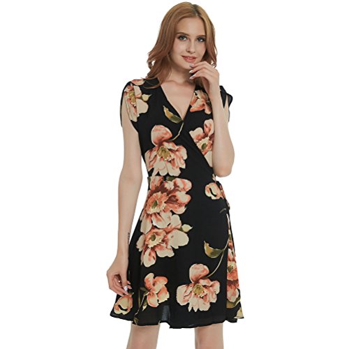 -. Title : ZXZY Women Boho Floral P.R.Int Short Sleeve V Neck Tied Wrap Dress