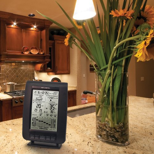 -. Binding : Kitchen -. Brand : AcuRite -. Color : Black -. EAN : 0532612851539 -. Feature : Patented Self-Calibrating Forecasting pulls data from a sensor in your backyard to give you the most accurate forecast for your exact location / Atomic clock updates time for consistent accuracy and no manual setting ever for DST / Multi-variable history chart shows barometric pressure, temperature and wind speed / Tabletop or wall-mountable design / Strong signal penetration (enhanced 433 MHz) -. IsAutographed : 0 -. IsMemorabilia : 0 -. Label : AcuRite -. Manufacturer : AcuRite -. Model : 634 -. MPN : 634 -. NumberOfItems : 1 -. PackageQuantity : 1 -. PartNumber : 634 -. ProductGroup : Home -. ProductTypeName : HOME -. Publisher : AcuRite -. Size : NO SIZE -. Studio : AcuRite -. Title : AcuRite 00634 Wireless Weather Station with Wind Sensor -. UPC : 703562780914 -. Warranty : 1-Year warranty