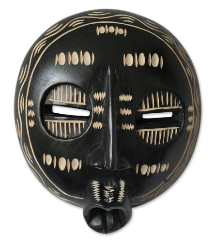NOVICA Decorative Ghanaian Sese Wood Mask, Black, 'Good Chief Balumba'