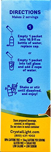 -. Binding : Grocery -. Brand : Crystal Light -. EAN : 0043000945117 -. Feature : Each box of Crystal Light On The Go Natural Lemon Iced Tea contains 10 individual packets you mix with up to 16 fluid ounces (473 ml) of water / Crystal Light On The Go Natural Lemon Iced Tea is 99% caffeine free (10 mg of caffeine per serving) and low in sodium / Crystal Light On The Go Natural Lemon Iced Tea is a kosher product and gluten free / Each 8 ounce serving of Crystal Light On The Go Natural Lemon Iced Tea contains 5 calories / Crystal Light On The Go Natural Lemon Iced Tea has 90% fewer calories than leading beverages -. Label : Kraft Foods -. Manufacturer : Kraft Foods -. NumberOfItems : 10 -. PackageQuantity : 10 -. ProductGroup : Grocery -. ProductTypeName : GROCERY -. Publisher : Kraft Foods -. Studio : Kraft Foods -. Title : Crystal Light On the Go, Iced Tea with Lemon Flavor, 10 Count Boxes (Pack of 10) -. UPC : 043000945117