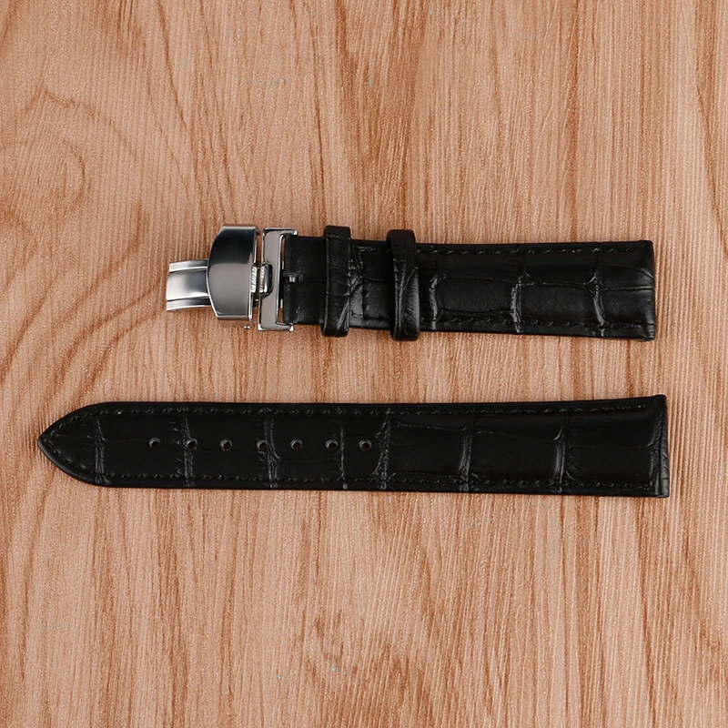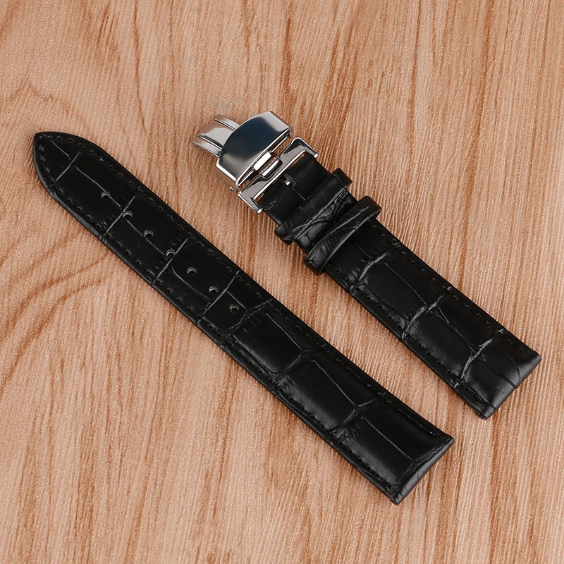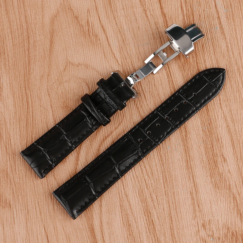 | [해외]높은 품질의 팔찌 18/20/22 미리메터 시계 스트랩 밴드 블랙 정품 가죽 손목 교체 군사 |