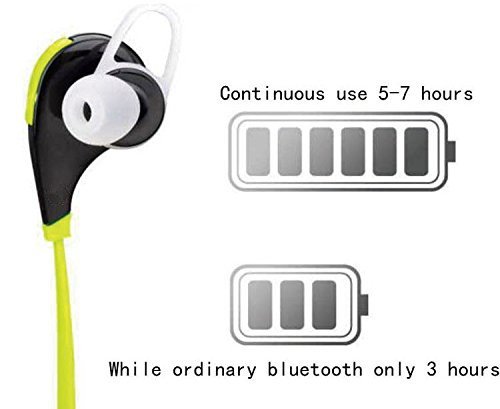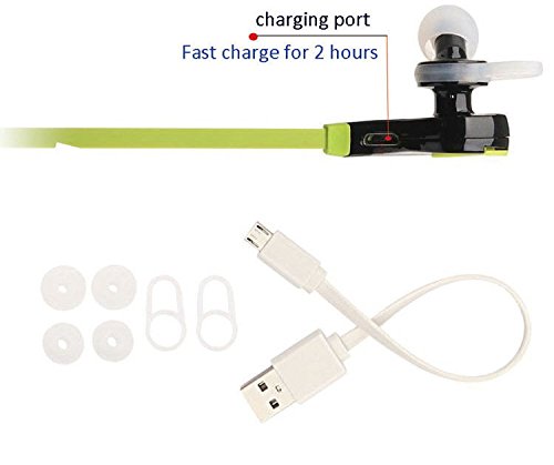 -. Feature : Bluetooth V4.0, Compatible with all standard Bluetooth-enabled mobile phone, media devices.High-fidelity stereo music and clear speech, You can begin enjoying CD quality stereo sound instantly. / Pure Sound In-ear white noise and listener fatigue reduction. Eliminates the white noise and delivers a clean audio experience offering hours of pure enjoyment. / Strong Wireless Signal: you can enjoy skip-free music in a 10-meter working distance, even if use your music devices left/right side, above/below wais / Universally compatible with most Bluetooth-enabled phones.And built-in extra-long battery allows up to 5-hour talking/playing time / What You Get: Wireless headphone, user manual, charging cable and 5 different sizes earbuds.