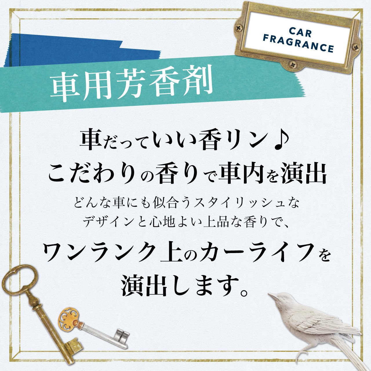 Fragrance for cars that directs the inside of a car with the smell of commitment.