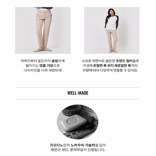 오드리팬츠입니다 .슬림핏이여서 데일리로 활용하기에 좋고,스판감이 많아서 활동하기에 편한면바지입니다.