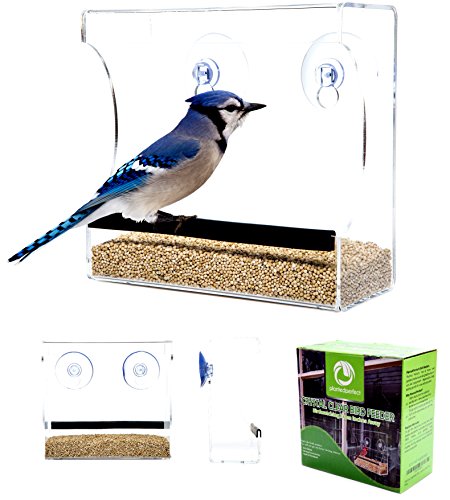 CRYSTAL CLEAR BIRD FEEDER - Suction Window Feeders Birds, Cats and Kids Love - Easy to Clean and Fill - See Cardinals, Finches and Orioles Feed Inches From Kitchen Windows - 100%