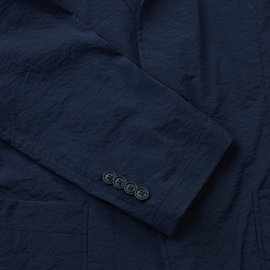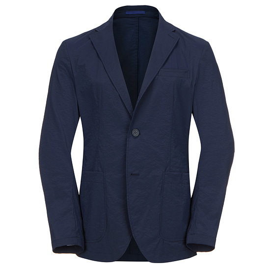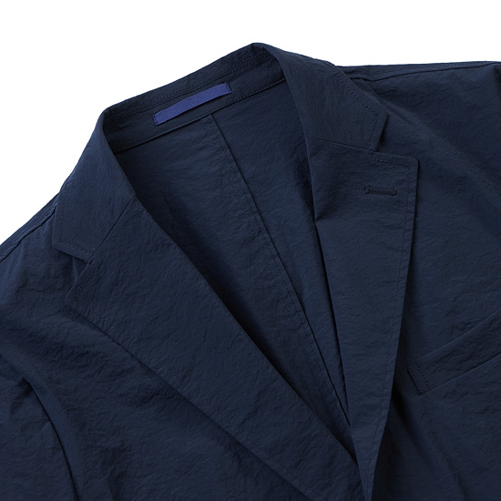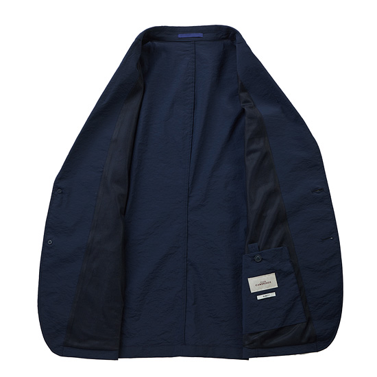 - 시어서커 소재를 적용한 깔끔한 솔리드 컬러의 남성 자켓.