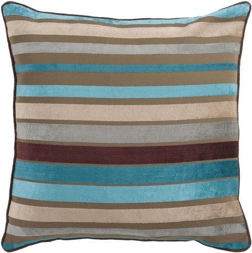 Surya JS-024 Hand Crafted 60% Viscose / 40% Cotton Teal 22" x 22" Striped Decorative Pillow