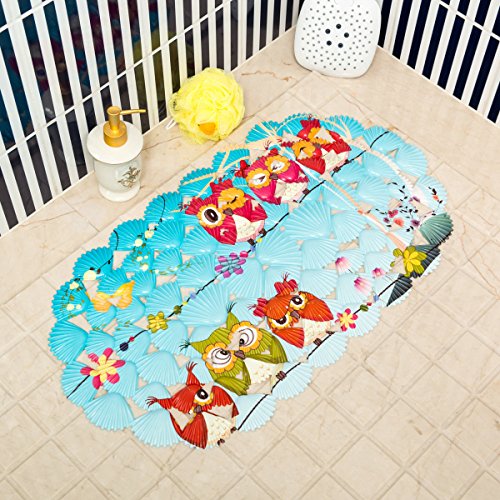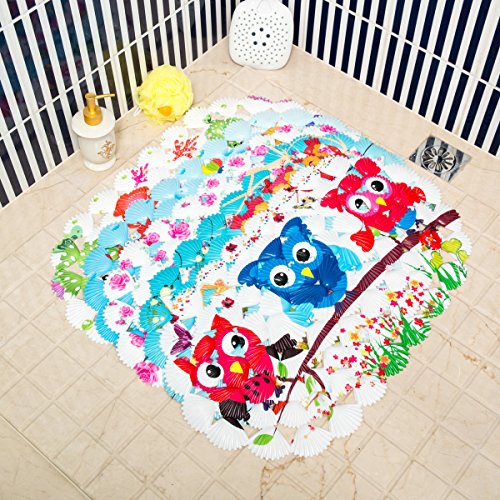 Fangkun Children's Non-Slip Bathtub Mats,Cartoon Sea Shell Oval Shower Bath mat Anti-Bacterial Tub Kitchen Balcony Washable 15 W x 27 L Inches (Owl #6)