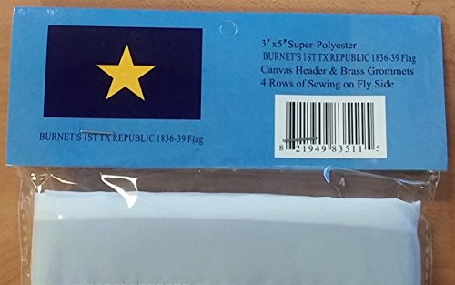 Burnet's 1st Texas Republic Polyester 3x5 Foot Flag 1836-1839 Revolution Burnett