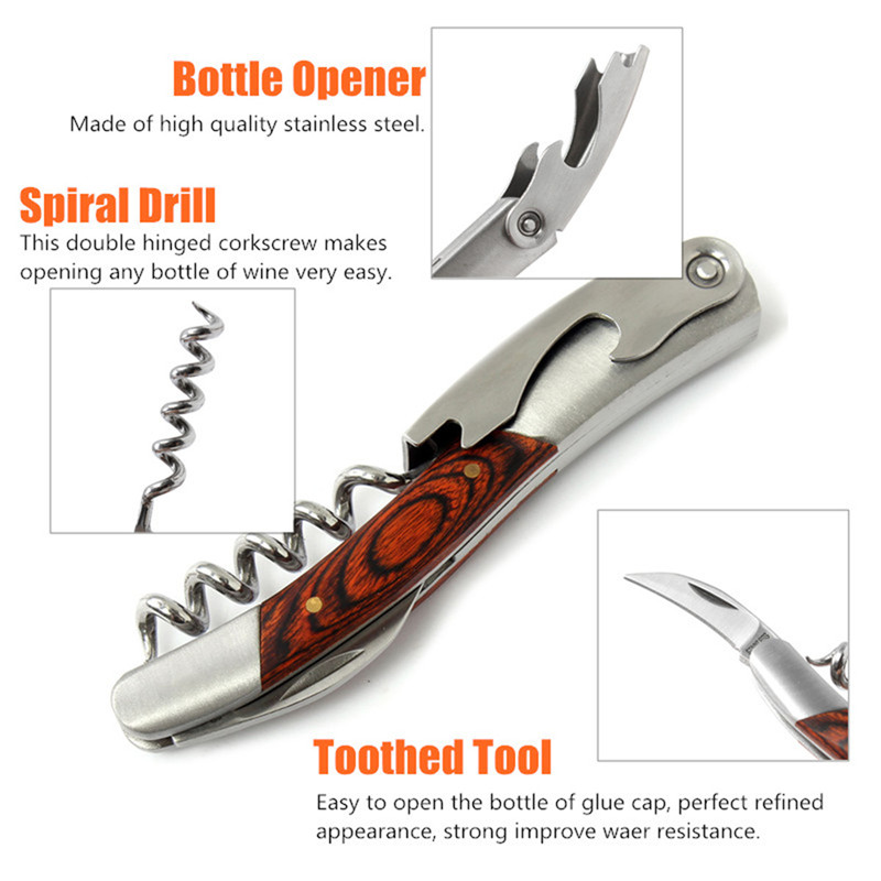 Our double-hinge corkscrew is constructed from fine wood and stainless steel, making it not your ordinary