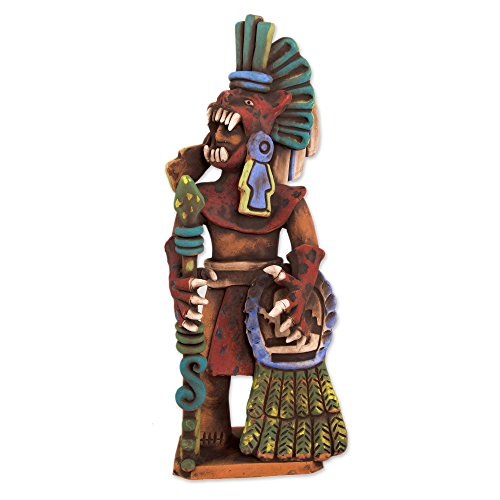 NOVICA Large Multicolor Archaeological Ceramic Sculpture, 14" Tall, 'Fierce Aztec Jaguar Warrior'