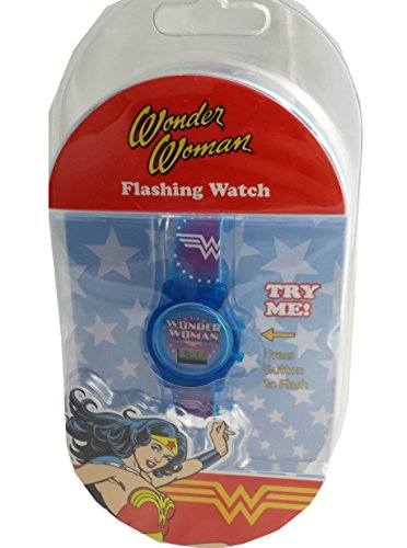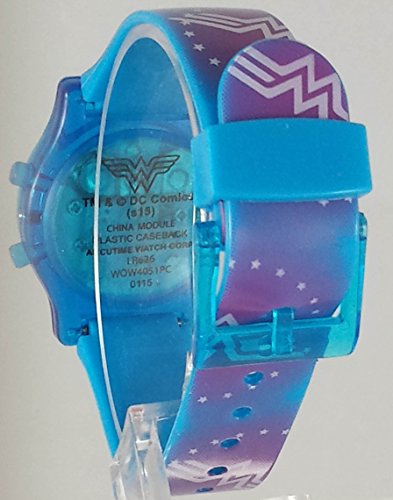 -. Binding : Watch -. Brand : DC Comics -. Department : girls -. EAN : 0030506364832 -. Feature : Light Up Effect when you press the right corner button:Flashes green,red,and yellow / Plastic band with 8 holes and Buckle Strap to fit to your child's wrist / Large Wonder Woman Words(great or any girl 6 and up) / Accurate Japanese Quartz Movement -. Label : Accutime -. Manufacturer : Accutime -. Model : WOW4051 -. MPN : WOW4051 -. PartNumber : WOW4051 -. ProductGroup : Watch -. ProductTypeName : WATCH -. Publisher : Accutime -. Studio : Accutime -. Title : Wonder Woman Girl's Light Up Digital Watch WOW4051 -. UPC : 030506364832