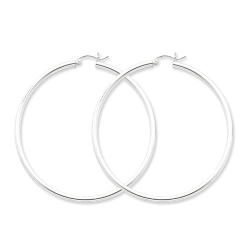 -. Title : 2.5mm, Sterling Silver, Extra Large Hoop Earrings - 80mm (3 1/8 Inch)
