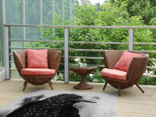 Kess InHouse Sophy Tuttle "Crow" Black White Indoor/Outdoor Floor Mat, 4 by 5-Feet